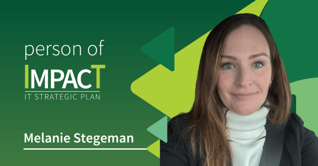The Person of ImpacT recognition felt very special to Stegeman. She believes a person of Impact can be defined as a good colleague, someone who is helpful even when that person may not know the right answer, someone who keeps a level head and digs into their work. She has only been in her current position since July but already recognizes these attributes in her own team.