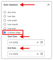 2. b. Date Updated: select Any time or Custom range.