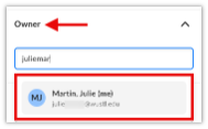 2.c. Owner: begin entering your email address, select it when it appears below.
