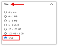 • Recommended starting point: Choose 1 GB+ to identify your largest files first.