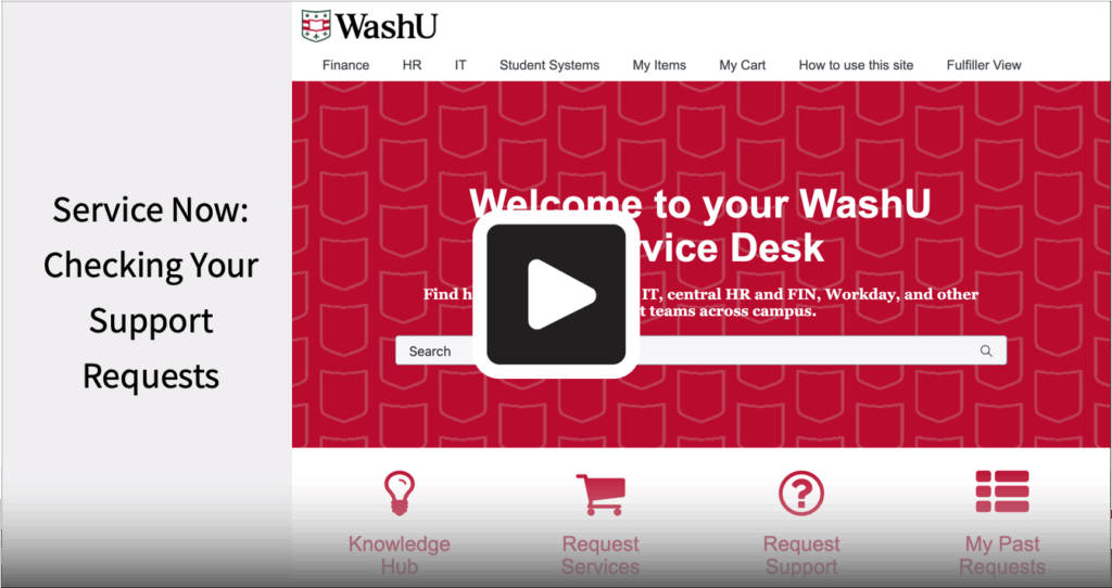 The WashU Support Portal is live at servicedesk.washu.edu. See our guides and microlearning videos below, or call 314-933-3333 if you need immediate assistance. Support may also be requested via the new Get Help form.