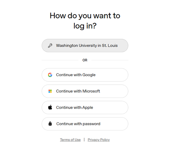 NOTE: If you already have an OpenAI account registered to your WashU email, proceeding with these steps will require you to migrate your account into the WashU-managed workspace. Please click here for important information before proceeding.